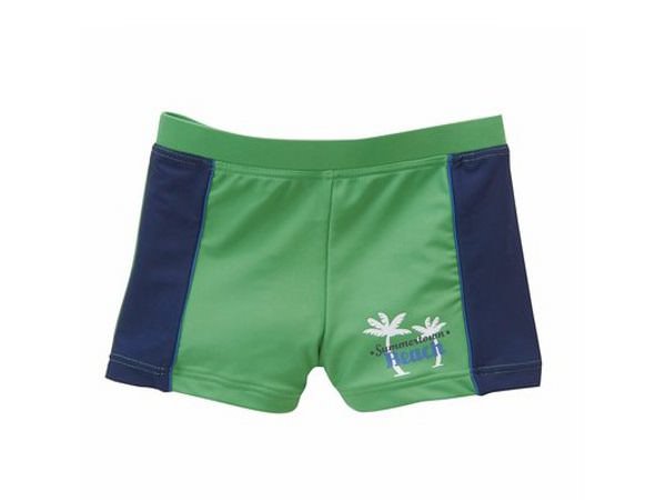 La ştrand, la mare, la un aqua parc sau oriunde e loc de o mică bălăceală, alege-i micului înotător un slip de baie ca acesta, cu banda contratantă în părţi şi mici imprimeuri în faţa. Poţi alege unul pe verde sau pe mov, la preţul de 44.99 lei.